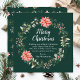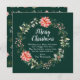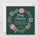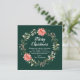 Cette carte de Noël amusante et festive en aquarelle peut être personnalisée avec votre nom de famille. Il comporte une couronne de poinsettias rouges et sainte sur un arrière - plan vert foncé. Le texte combine écriture manuscrite et polices serif pour un look élégant et sophistiqué.