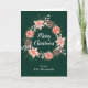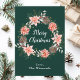 Cette carte de Noël amusante et festive peut être personnalisée avec un nom ou un titre. Il comporte une couronne de Noël aquarelle avec poinsettias rouges et saint sur un arrière - plan vert foncé. Le texte combine écriture manuscrite et polices serif modernes pour un look élégant et sophistiqué.