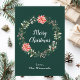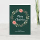 Cette carte de Noël amusante et festive peut être personnalisée avec un nom ou un titre. Il comporte une couronne de Noël aquarelle avec poinsettias rouges et saint sur un arrière - plan vert foncé. Le texte combine écriture manuscrite et polices serif modernes pour un look élégant et sophistiqué.