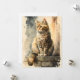 Un chat tabby à fourrure vibrante se trouve gracieusement sur une corniche, entouré de couleurs douces et éthérées. L'arrière - plan présente des effets d'aquarelle, donnant à la scène une atmosphère onirique et artistique.