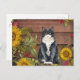 Chat et tournesol en noir et blanc Tuxedo sur Grange Wood Thanksgiving Carte postale Voix de bienvenue. Salutation ~ "merci"