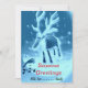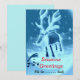 Une scène d'hiver festive avec un mignon robin regardant un renne tandis que la neige tombe. Inclut le texte personnalisable "Joyeuses Fêtes et prêt à personnaliser avec votre nom. J'ai créé ce design bleu à partir de mes peintures originales en verre. ©Annabel Potter