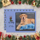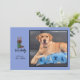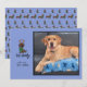 Personnalisez cette carte de vœux photo amusante et spirituelle, plate et sur le thème des fêtes. Insérez votre propre photo personnelle/familiale (ou celle de votre adorable chien). Cette carte bleue présente mon illustration originale, dessinée à la main et fantaisiste, d'un adorable dachshund portant une écharpe verte et des bois de renne. En dessous, en lettrage manuscrit, il est écrit "Feliz Navidog". Personnalisez votre propre salutation et mettez votre nom. Au dos se trouve un motif répétitif coordonné de dachshunds déguisés en rennes. C'est une carte amusante et simple pour célébrer votre amour pour les chiens.
