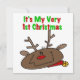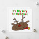 Un adorable bébé avec un design de premier Noël sur des T-shirts, bodysuits, aimants, cartes, autocollants, ornements souvenirs et plus encore, avec un design de renne mignon et un texte rouge et vert qui dit C'est Mon Tout Premier Noël !