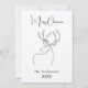 Un renne abstrait noir d'une ligne. Personnalisez et ajoutez un nom et une année. Texte : Joyeux Noël. Retour : ajoutez votre note et vos noms.
