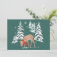 Un charmant renne se dresse dans un paysage boisé enneigé, entouré de pins gelés. Avec sa palette de couleurs douces et son arrière - plan hivernal, ce design saisit la sérénité de la saison hivernale.