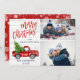 Retro Christmas Red Truck Rustic 2 PHOTO Greeting Holiday Card.