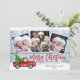 Retro Christmas Red Truck Rustic 3 PHOTO Greeting Holiday Card.