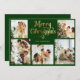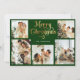 Envoyez la fête avec une carte de collage photo Green & Gold Joyeux Noël! Avec un script rétro chic dans les tons dorés et un arrière - plan noir élégant, cette carte présente magnifiquement les photos de famille préférées. C’est le parfait mélange d’élégance classique et de modernité, ce qui en fait un endroit intemporel pour les proches. Personnalisez-vous avec des photos et un nom de famille pour créer un accueil de vacances unique!