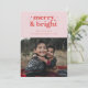 Cette carte de Noël rétro adorable est parfaite pour les familles qui souhaitent souhaiter à leurs amis et à leur famille un Joyeux Noël. Cette carte présente les mots "joyeux et lumineux" dans une police rétro rouge vif sur fond rose. Ajoutez votre propre message personnalisé et le nom de votre famille. Vous pouvez également ajouter du texte supplémentaire au verso de la carte. Votre famille adorera cette carte de Noël joyeuse !