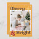 Celebrate the holiday season with our delightful "Merry and Bright" Christmas card! This customizable template, perfect for spreading cheer, features a heartwarming family photo. The design boasts a retro 70s charm with a mustard yellow background adorned with cream-colored stars, while the text in chocolate brown and berry red adds a festive touch.