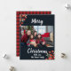 Carte de vacances Retro Red et Black Plaid Photo. Envoyez vos salutations de saison et votre photo de famille à votre famille et à vos amis avec ce noir avec des baies rouges sur le devant avec votre salutation et rouge et noir plaid retour de la carte.