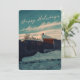 Cartes Pour Fêtes Annuelles Retro Winter Snow Landscape Teal Sky Holiday