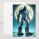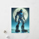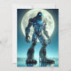 Sasquatch se dresse sous une pleine lune entourée de montagnes, révélant un exosquelette de titane de circuits électroniques et de lumières LED...