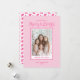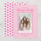 C'est l'année d'un Noël rose ! Notre carte de Noël photo amusante et féminine comporte un texte décoratif qui souhaite chaleureusement "Que vos journées soient joyeuses et lumineuses". Un cadre pointillé met en valeur votre photo. Personnalisez le modèle avec votre message, votre nom et votre année pour le rendre unique. Au verso, un motif sans couture de houx et de baies. Présenté dans une palette moderne rose et blanc, mais toutes les couleurs sont modifiables par vos soins. © Kimbellished, LLC