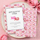 La carte de vacances moderne pour la fête des meilleures amies Pink et Red Galentines XOXO célèbre l'esprit de la fête de Galentine avec un design ludique mettant en avant une palette de couleurs rose, rouge et blanc. Le motif moderne multicolore "XOXO" dessiné à la main à l'aquarelle dans des tons rose vif, rouge, pêche et rose pâle se marie à merveille avec une police de machine à écrire noire, créant un look chic et sincère parfait pour elle.🦋