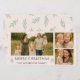 Partagez vos vœux chaleureux avec cette élégante carte de Noël rose blush. Le design panoramique 8×4 présente trois emplacements pour des photos de famille, un message classique « Joyeux Noël » écrit en texte vert sapin foncé, et des brindilles botaniques délicates pour un style moderne et intemporel. Le verso continue le thème avec un motif de verdure assorti, créant une finition soignée. Parfait pour les familles qui souhaitent une façon douce, élégante et sincère de célébrer la saison.