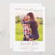 Ce petit plaisir rose et presque marié, sauf la carte de jour férié, est le salut simple parfait pour un couple engagé. Le design est composé d'une typographie classique rose vif et blanche associée à une police de caractères rustique mais élégante avec style lettré à la main. Personnalisez la carte avec votre photo fiançailles, vos noms, votre date de mariage.