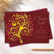 « L’Shanah Tovah. » Un arbre graphique sous forme de feuille d'or fausse avec des points roses, orange et rouge scintillants formant une étoile de David et des « feuilles » en points sur fond bordeaux, vous aide à inaugurer les festivités de Roch Hachana. Un minuscule motif d'étoile de David rose orne le dos. Ressentez la chaleur et la joie de la période des fêtes chaque fois que vous envoyez cette carte de vœux moderne, superbe et scintillante. Envoyez-la à quelqu'un de spécial !