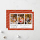La carte de vœux Rosh Hashanah Shana Tova 3 Photo Collage est un design élégant avec un collage de trois photos sur le devant, une ligne pour vos vœux et un modèle pour le nom et les prénoms de votre famille. Le dos est un rouge festif avec des rayures diagonales