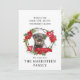 Aquarelle dessinée à la main d'une tête Rottweiler sans peur encadrée d'une belle couronne montrant des branches de la nature et de belles fleurs de Poinsettia. Cette carte fait sourire chaque amoureux des chiens et montre que le chien fait partie d'une famille aimante. Échangez la phrase de sentiment et personnalisez-la avec votre nom de famille ou seulement le nom du chien.