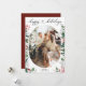Cette carte de vacances moderne et heureuse comprend votre photo préférée avec des botaniques hivernales élégantes et un script de coeur de calligraphie. Pour effectuer des modifications anticipées, sélectionnez Personnaliser -> Modifier à l'aide de l'outil de conception.