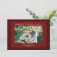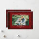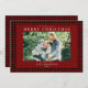 Créez vos propres cartes de Noël photo personnalisées avec l'une de vos photos de famille préférées avec le nom de typographie minimaliste personnalisé et l'année sur un arrière - plan motif plaid rouge et noir en vichy.