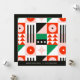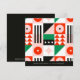 Cette carte de vœux moderne à motif Bauhaus rouge et vert peut être commandée au format carte postale ou associée à des enveloppes.
