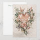 Cœur floral rose avec papillons et botanique douce s'ouvre sur un cœur doucement stratifié formé de roses aquarelles, de fleurs de jardin et de feuillage botanique aérien, disposés dans une composition verticale équilibrée. Cette carte de vœux présente une palette rose et ivoire picturale avec des sous-tons chauds de pêche, des verts sauge assourdis et des ombres sépia douces, posée sur un fond à texture douce qui évoque la papeterie intemporelle. De délicats papillons voltigent parmi les fleurs, leurs ailes translucides ajoutant de la légèreté et un mouvement doux, tandis que des textures vintage subtiles donnent une impression d'héritage.