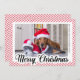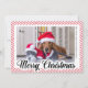 Cette modèle est une façon moderne et élégante de partager un accueil de vacances. Il présente un design épuré et minimaliste avec un message "Joyeux Noël" dans une belle calligraphie et un motif à rayures rouges festives. Ajoutez simplement votre photo préférée de votre chien et votre texte personnalisé pour compléter la carte.