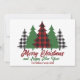 Cette carte de vacances rustique présente un plaid rouge branché et des arbres de Noël verts au-dessus de votre message Joyeux Noël et Bonne Année. Un look mignon et traditionnel qui est actuellement de nouveau dans le style, ces cartes festives sont parfaites pour une famille qui aime un design classique et nostalgique.