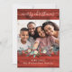 Ces cartes de fin de année simples et festifs présentent votre photo de famille préférée, avec une typographie moderne en écriture blanche qui dit "Joyeux Noël" sur un arrière - plan rustique, en bois rouge. Une jolie branche de feuillage vert de Noël, des fleurs rouges et blanches traditionnelles, des pinecones et des baies rouges sèches, offre un look à la fois classique et moderne.