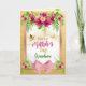 Rendez la fête des mères exceptionnelle avec notre carte de fête des mères florale tropicale à ruban rose enchantante et personnalisable ! Cette carte exquise arbore un design époustouflant avec quatre fleurs roses fuchsia nichées, entourées de feuilles de palmier luxuriantes, le tout délicatement disposé à chaque coin de la charmante bordure rose et or. À l'intérieur de la bordure, un gracieux colibri et un papillon dorés enrichissent le design avec le message « Bonne fête des mères ».