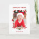 Cadre ruban rouge, joli, audacieux et festif, décoré d'arcs et de fleurs de Noël avec un seul modèle photo portrait, "Holiday Cheer" texte graphique en police décorative personnalisée et champs de texte modifiables. L'intérieur comprend des graphiques floraux complémentaires et des champs de texte supplémentaires.
