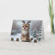 A touch of holiday whimsy with this charming card featuring a Scottish Fold cat dressed as Rudolph. Perched on a snowy fence with antlers and a glowing red nose, this cozy winter scene captures the magic of the season. Snowflakes drift gently through a forested backdrop, making it perfect for cat lovers and anyone who enjoys a playful twist on tradition.