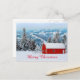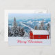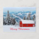 Photo d'une grange rouge avec son toit recouvert de neige. L'arrière - plan est une belle scène de pins et de montagnes. Le texte sur le devant dit "Joyeux Noël" et sur le dos dit "Je vous souhaite un très joyeux Noël et une année particulièrement heureuse." Personnalisez ces cartes postales avec votre propre message si vous le souhaitez.