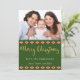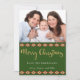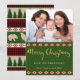 Le design festif de vacances sur le dos de cette carte est composé d'une combinaison de plaid rouge, de diamants du sud-ouest, de pins et d'animaux des bois, dont des ours, des wapitis, des corneilles et des renards, sur un arrière - plan vert de forêt. Sur le devant se trouve une photo que vous pouvez placer avec votre propre, et les mots "Joyeux Noël" dans la typographie en or populaire sur un arrière - plan vert de forêt, suivie par deux lignes blanches "de" que vous pouvez personnaliser.