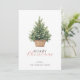 Simple rustic greeting card features watercolor tree in a basket with decor. Paired with modern and script typography