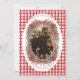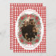 A warm and nostalgic photo card framed by watercolor poinsettias, pine branches, and golden ornaments, layered over a red gingham background for a cozy rustic Christmas look. Perfect for families who love farmhouse charm and traditional holiday style, this design beautifully highlights your favorite seasonal photo.