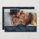 Cartes Pour Fêtes Annuelles Rustic Navy Blue Plaid 2 Photo Joyeux Noël