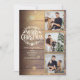 Un élégant design de vacances pour un collage de 3 photos dans un style rustique à personnaliser avec vos photos préférées dans des cadres dorés, message, noms et année sur un fond en bois rustique. Le verso présente des flocons de neige qui tombent sur un fond en panneaux de bois rustique assorti. Conçu par Thisisnotme©