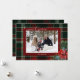 Votre accueil de vacances se démarquera par ce design chaleureux et rustique avec un arrière - plan plaid de Noël rouge, vert et blanc rubis, texte de Bonnes Fêtes modifiables, modèle photo simple avec bordure rouge et poinsettia d'angle et embellissement de pin. L'arrière comporte un graphique poinsettia complémentaire et un arrière - plan plaid.