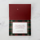 Votre accueil de vacances se démarquera par ce design chaleureux et rustique avec un arrière - plan plaid de Noël rouge, vert et blanc rubis, texte de Bonnes Fêtes modifiables, modèle photo simple avec bordure rouge et poinsettia d'angle et embellissement de pin. L'intérieur comporte du texte modifiable et un élément vide sur un arrière - plan plaid.