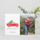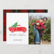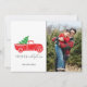 Camion de campagne rustique avec carte de vacances photo sapin de Noël. Customisez avec les noms et la photo. Cette carte de Noël revient à plaid sur le dos.