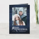 Cartes de vacances rustiques de style campagnard avec "Joyeux Noël" avec votre nom ou nom de famille personnalisé et l'année dans la typographie des vacances de ferme. L'avant de la carte présente votre photo personnelle mise en évidence par un imprimé arrière - plan en planche bleue de couleur riche. À l'intérieur de la carte, vous trouverez un espace texte pour votre message de vacances personnel. Disponible en stock de carte imprimé de haute qualité pour l'envoi standard ou un format numérique téléchargeable pour l'envoi rapide et facile par SMS, email ou même auto-impression.