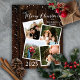 Bois rustique taché faux foncé "Joyeux Noël" quatre photos encadrées collage design vacances avec un motif de flocon de neige sur le bois foncé comme un arrière - plan sur le dos. Ajoutez simplement votre nom de famille et l'année ainsi que vos photos pour compléter le design. Conception composite par Holiday Hearts Designs (droits réservés) avec des photos d'espaces réservés modèles avec l'aimable autorisation de divers photographes via Unsplash.