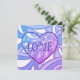 Jolie, blues, roses et violets, c'est cette carte de jour Valentines, ou n'importe quelle carte de jour. Grand AMOUR audacieux sur le devant dans un look de vitrail et votre message spécial sur le dos.