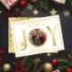 Simple fausse feuille, élégant et sobre photo de famille "Wishing You A Holiday Season Filled With Peace, Love and Joy" conception de la couronne avec photo circulaire centre design vacances de Noël. Le dos a une conception fausse feuille plaid. Une façon élégante d'envoyer vos voeux de Noël cette année!