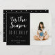 Festive, 'c'est la saison d'être Jolly, citation de typographie blanche de Noël, carte photo de vacances noir. Le dos de la carte est complété par un cadre doodle blanc sur l'arrière - plan noir correspondant. espaces de texte modèles pour le message et les noms.