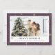 Célébrez les vacances avec cette élégante carte de voeux de saison violet avec des flocons de neige. Personnalisez facilement cette carte de vacances avec votre photo, un nom de famille et un texte.
